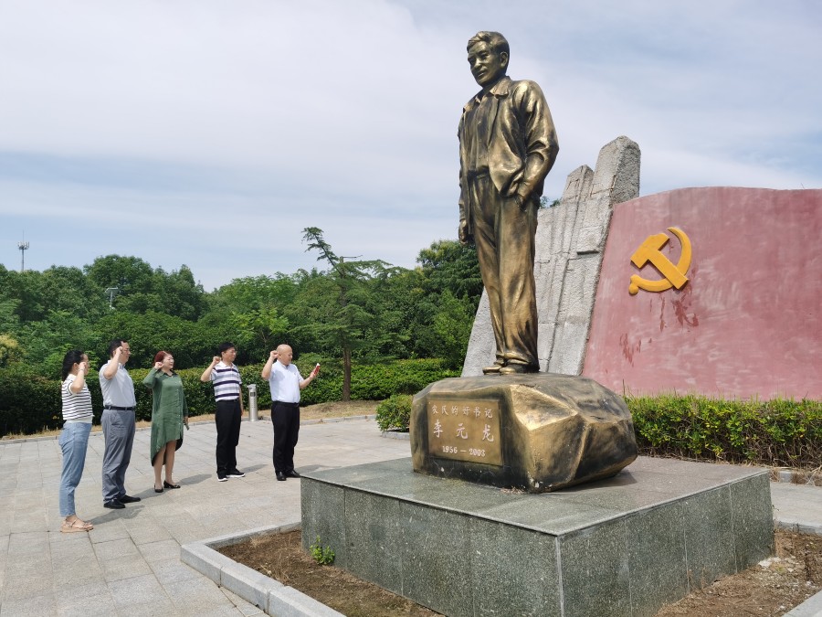 在第一站李元龙先进事迹陈列馆中,大家依次参观了先进事迹、勤政廉政、绿色发展三个馆。陈列馆充分展现了优秀农村基层干部、优秀共产党员、“农民的好支书”李元龙“廉洁清正、奉公克己”的一生。李元龙同志用自己的实际行动,把共产党员“立党为公、一心为民”的光辉形象印在了老百姓的心坎上,赢得了群众的爱戴。米兰平台在职党员在大泉村李元龙同志的雕像下,面对鲜红的党旗,跟随支部书记张树明一起重温了入党誓词。