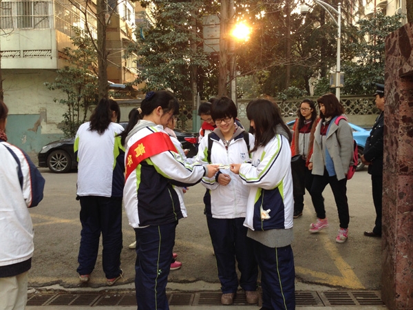 为庆祝女生节的到来,团委干部搜寻各式各样的书签,并在书签背面写上祝福话语,一大早和当天执勤的学生会干部一起站在学校门口,传递给全校所有女生,这一举动让女生们深感惊讶,也纷纷表示喜欢。男同学也对身边的女同学表示节日的祝福,促进了同学们之间的友情。