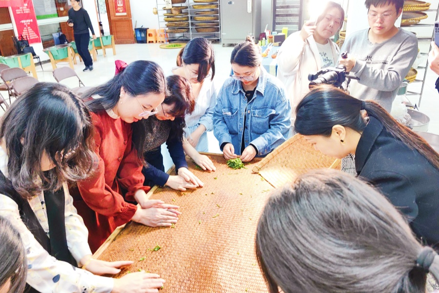 10月21日下午,与会同志实地参观玄武区居民终身学习体验基地——盛峰茶业有限公司,体验被收录人类非物质文化遗产保护名录的雨花茶制作技艺,跟着雨花茶制作技艺传承人陆葵香老师学习雨花茶的制作技艺,亲手炒制雨花茶。