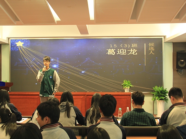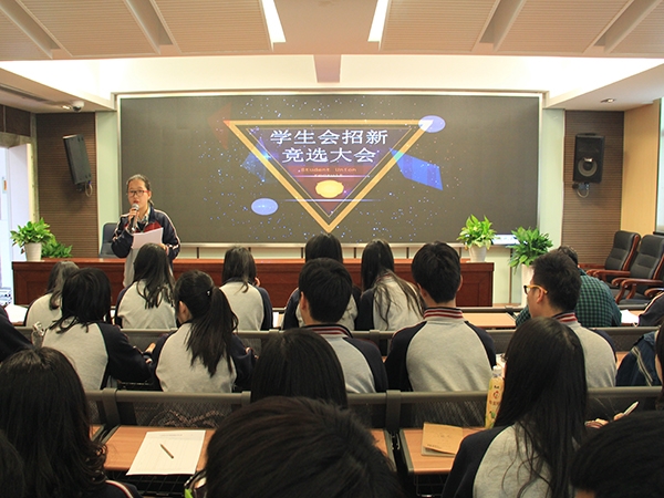 招新工作开始后,首先由学生会副主席李晗瑀同学向15级新生讲述了学生会的职能以及任职条件,她指出:学生会是一个相对需要吃苦耐劳能力的地方,它可以将同学们的潜力更加充分的压榨出来,有利于同学们更快地提升自己的素质,学生会需要的是有坚定毅力的同学,希望同学们清楚认识自己,认识学生会,理智竞选。