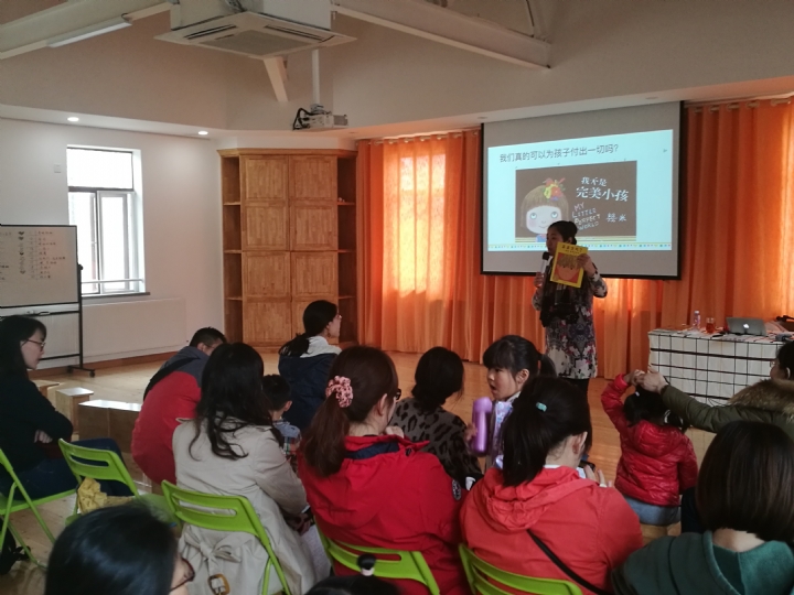本次活动可称为亲子阅读讲座,近百位大小听众将报告厅坐的满满的,何老师讲述了如何从绘本入手,感受孩子世界的不同;如何从理解绘本开始,走进孩子的心灵;并与年轻的父母们一道探索阅读的方法,共享亲子阅读的美好。何老师精彩而生动的语言,配以ppt上精美绘本图片,宛如细说一个个绘本故事,连孩子们也在会场静听了三十分钟。