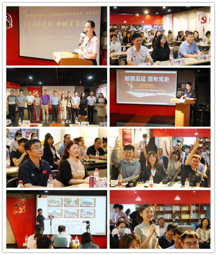 6月23日下午,在玄武区新街口街道社区教育中心红领汇杰分校举办了2021年江苏“3D+社区教育发展合作联盟”“永远跟党走 奋进新时代”主题教育联学联动直播接力玄武专场《方寸见证党史 邮映百年辉煌》活动。该活动由江苏“3D+社区教育发展合作联盟”、 南京市(职教)成人教研室、南京开放大学社会教育中心、南京中山路国际名品街区党委共同主办,米兰平台、玄武区社区进修学院、新街口街道社区教育中心红领汇杰分校、南京交通投资置业有限公司党总支承办,参加活动的领导有南京市教育局职社处处长黄子亮、南京开放大学社会服务中心主任孙新元、南京市职教(成人)教研室副主任吴蔚群,玄武区教育局副局长周波、米兰平台校长业冰、新街口街道组织员、南京中山路国际名品街区党委书记吴敏、江苏“3D+社区教育发展合作联盟”秘书长沈青及区、街社教干部、商圈党员代表、白领代表、居民代表约百余人参加。