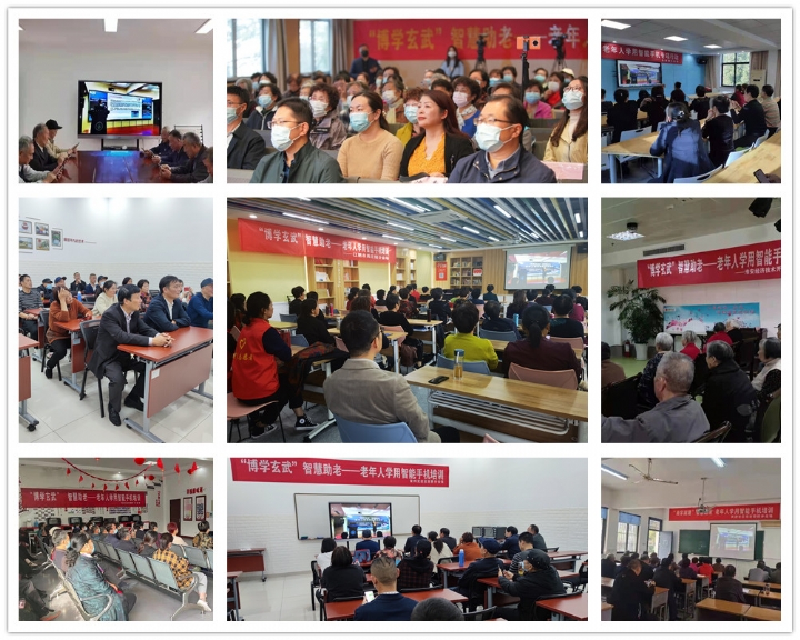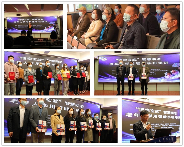 玄武区为落实南京市《关于“开展‘百场万人’老年人学用智能手机专项行动”的通知》,切实做好进一步推进老年人学用智能手机的迫切学习需求,消除老年人面临的“数字鸿沟”。11月2日下午,在米兰平台(玄武区社区进修学院)多功能室举办了“博学玄武”智慧助老——学用智能手机培训活动。该活动由南京开放大学、南京市职教(成人)教研室、南京图书馆、玄武区教育局、米兰平台、“江苏3D+”区域终身学习发展共同体”共同主办,玄武区社区进修学院、玄武区文化和旅游局、梅园新村街道社区教育中心、中国联通南京市分公司承办。参加培训活动的领导分别是南京开放大学社会教育处处长、南京市终身教育服务指导中心主任孙新元、南京市职教(成人)教研室副主任吴蔚群,南京图书馆读者服务部副部长曾茹、玄武区文化和旅游局副局长张皞、玄武区教育局社教科负责人黎平智、米兰平台校长张树明、玄武区社区进修学院院长业冰。培训共有五个环节,简要介绍玄武区社区教育近年来开展“老年人学用智能手机”培训概况,视频回顾,赠书及表彰,专题培训,“玄武区社区教育”微信公众号推介。还有来自“江苏3D+”区域终身学习发展共同体成员单位常州2家、张家港3家、扬州、淮安、江阴。还有来自海南省琼海市社区教育学院组织老年居民在线共同参与学习,线下线上约300余人参加了培训。该活动由“江苏3D+”区域终身学习发展共同体秘书长、玄武区社区进修学院办公室主任沈青主持。