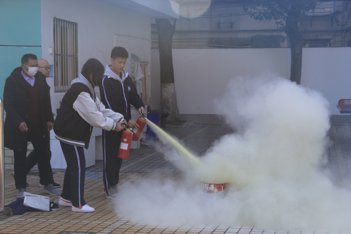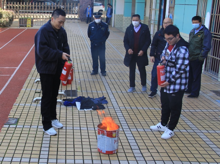 学校安全保卫处陶勇主任、教导处李青主任、总务处杨增群主任等相关负责人亲临现场,对本次消防演练活动进行具体指导,同时为本次消防演练活动配备了灭火设备、器材,给予消防演练活动大力的支持。