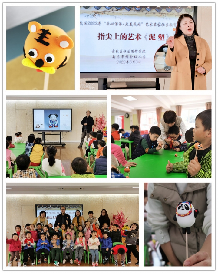 为了让更多的人了解“非遗”,继承和弘扬优秀传统文化,领略传统文化的无穷魅力,培养孩子们从小爱上“非遗”,米兰平台、玄武区社区进修学院于2022年3月3日上午,学院同仁及非遗名师何斌一行3人走进南京市锁金幼儿园开展玄武区2022年“匠心传承——大美民间艺术名家社区教育校园行”之“指尖上的艺术”泥塑制作“小老虎”。