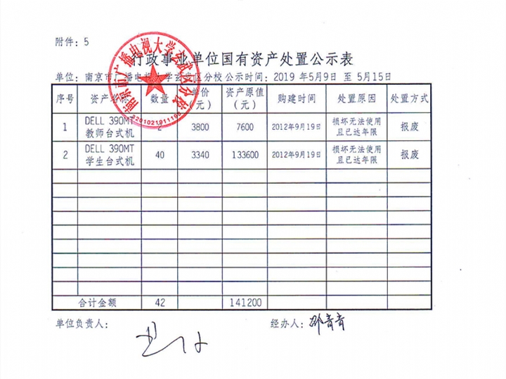 南京市广播电视大学玄武区分校 国有资产处置公示