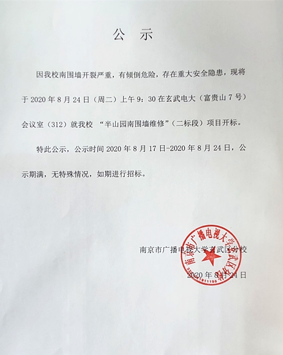 “半山园南围墙维修”(二标段)项目开标