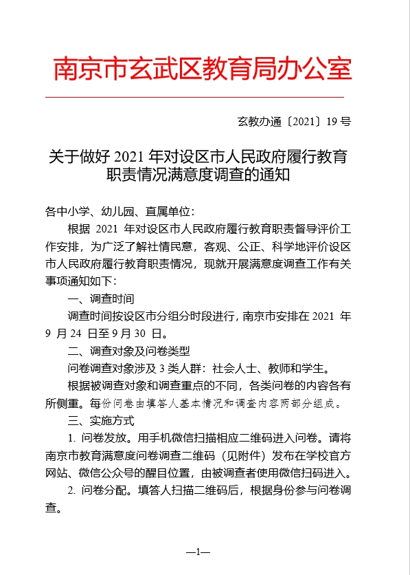 关于做好2021年对设区市人民政府履行教育 职责情况满意度调查的通知