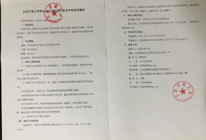 米兰平台组合办公室安装工程竞争性谈判邀请