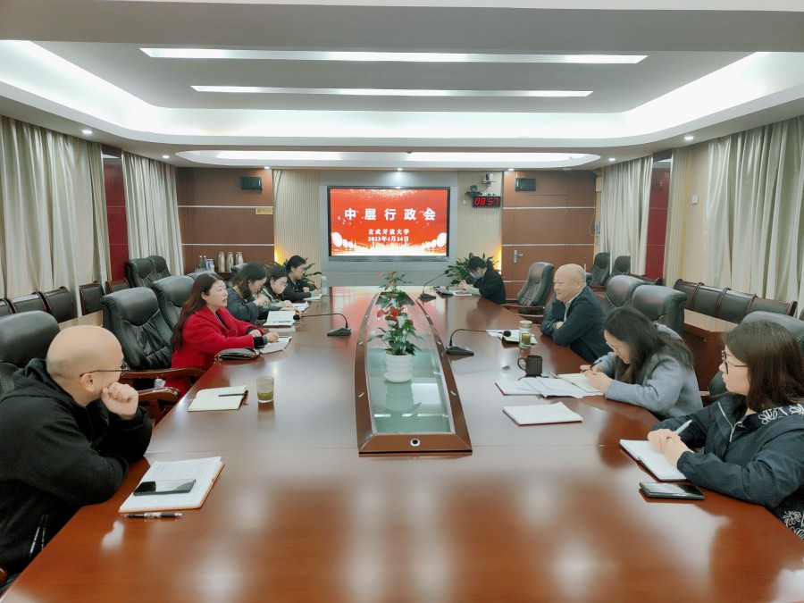 会议的前半段按惯例由各部门负责人汇报近期工作和下阶段将要完成的工作。每位中层干部提前思考、仔细梳理、认真汇报,既是一次个人分管工作的回顾与展望,也是一次部门间的相互学习和了解。从大家的汇报中,不难看出,每一位中层干部尽职尽责、勇于担当,确保了学校各项工作的顺利开展。