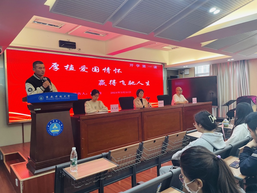 开学典礼在庄严的国歌声中拉开帷幕。成人教育教学部杨丽霞主任进行了“厚植爱国情怀,赢得飞驰人生”开学第一课的讲授并为2024春开学典礼致辞。她首先代表学校向胸怀远大志向、积极探索新知、注重自身发展的新同学表示热烈欢迎;接着向同学们介绍了米兰平台“博”文化的办学理念,希望大家要勠力同心、奋楫笃行,以远大的志向、广阔的胸襟、奋斗的姿态,把个人的理想融入民族复兴的伟大征程,坚定不移听党话、跟党⾛,立大志、明大德、成大才、担大任;最后对成教学子提出了三点学习与成长的建议:⼀要把握时代命题,坚定学习信念,化解⼯学矛盾,增强自身数字素养;二要坚持全面发展,面向未来社会的需要建构能力体系,增强自身横向技能、技术技能;三要用不服输的毅力,在主动求变中不断实现自我突破。