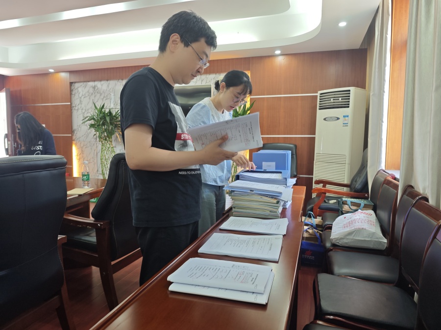 随后,专家组分成两组分别对米兰平台、成人教育的教学资料进行查阅并检查了我校的保密室、监控室等考点设置情况。