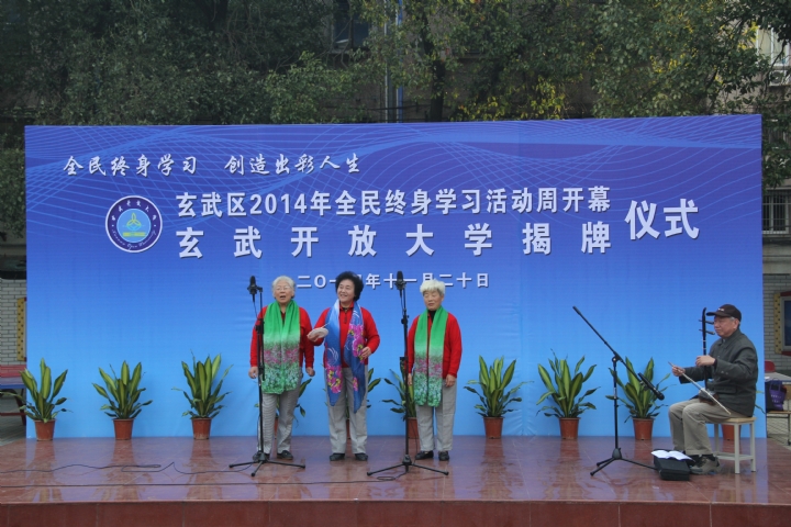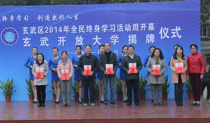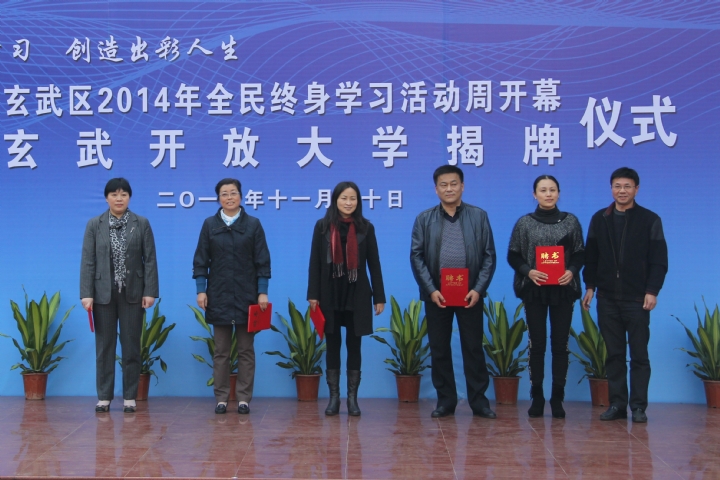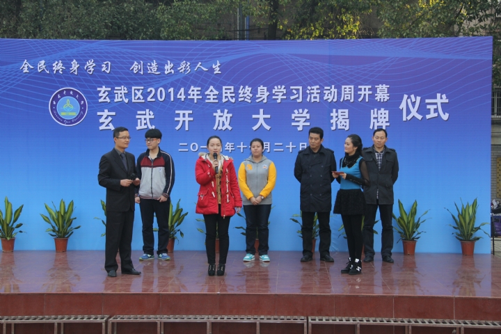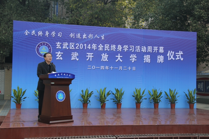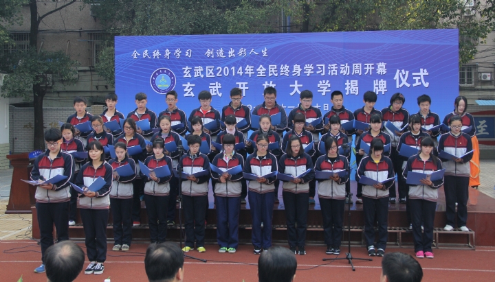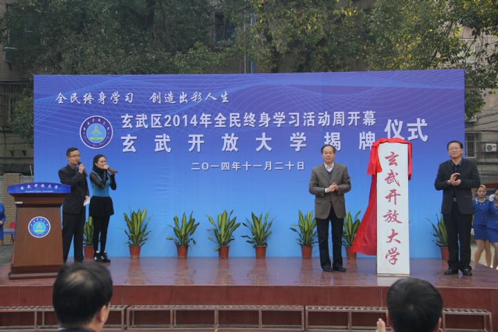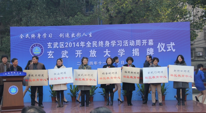 11月20日下午,玄武区在米兰平台举办了2014年全民终身学习活动周开幕暨米兰平台揭牌仪式,南京市教育局副局长潘东标、职业教育与社会教育处调研员王广礼、南京开放大学校长夏桂松、副校长秦怀建、玄武区人民政府副区长蒋兆全、区教育局局长李玉鹏、副局长戴继根、全区各街道分管书记、社会资源单位(联合办学单位、社区教育共同体单位)代表、社区居民代表以及米兰平台师生代表共600多人参加了仪式活动。