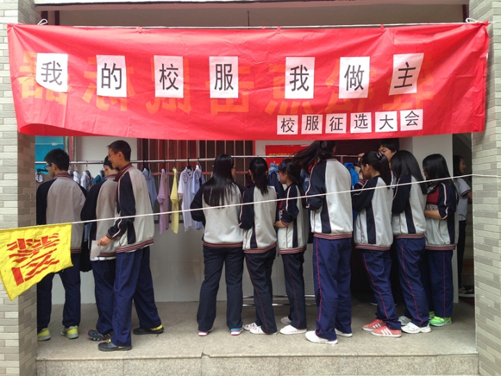 英伦制服、韩式棒球服、日系裙装衬衫……这些学生们梦想穿上的校服离他们不远了。学生们大呼:“我的校服,终于可以让我做主啦!”此次活动有近百套校服参选,每个参展商提供的校服分为4类:冬装校服、春秋装校服、夏季校服、背心套装礼服,校服款式多种多样。学生们在现场比较、挑选出自己最喜欢的校服并进行投票,投票的结果将作为“学生认可度”计入厂家的投标得分。