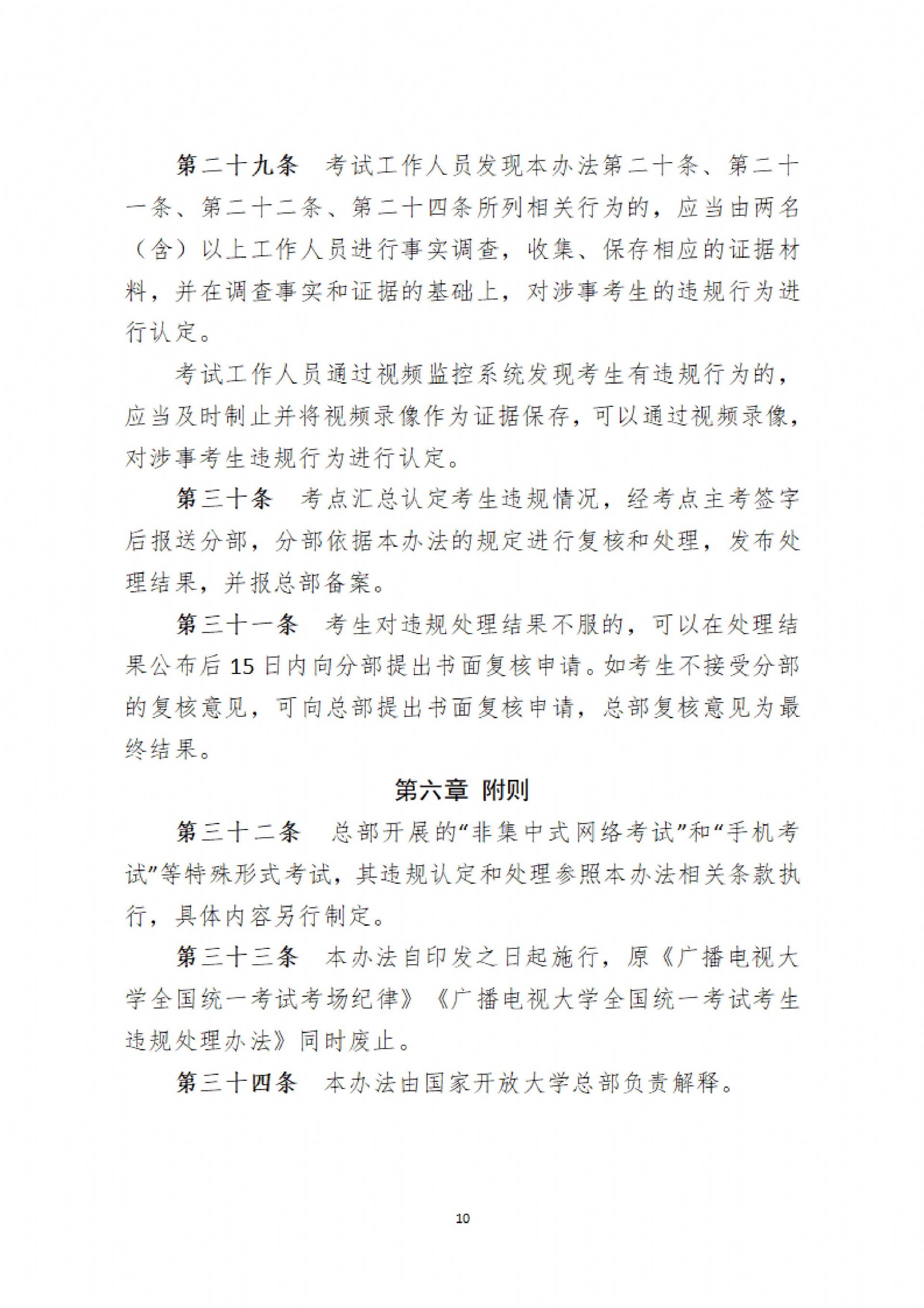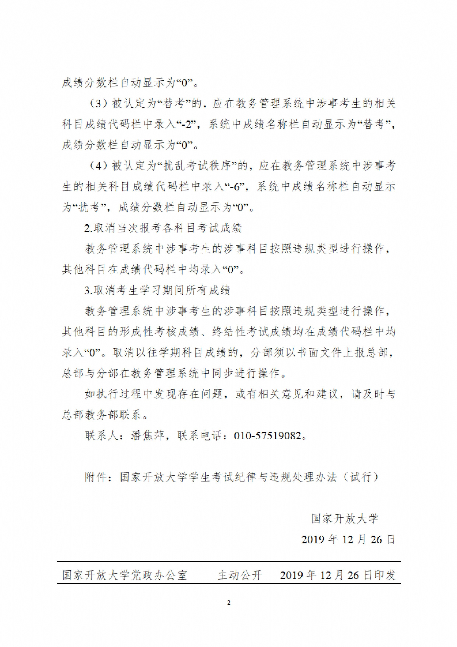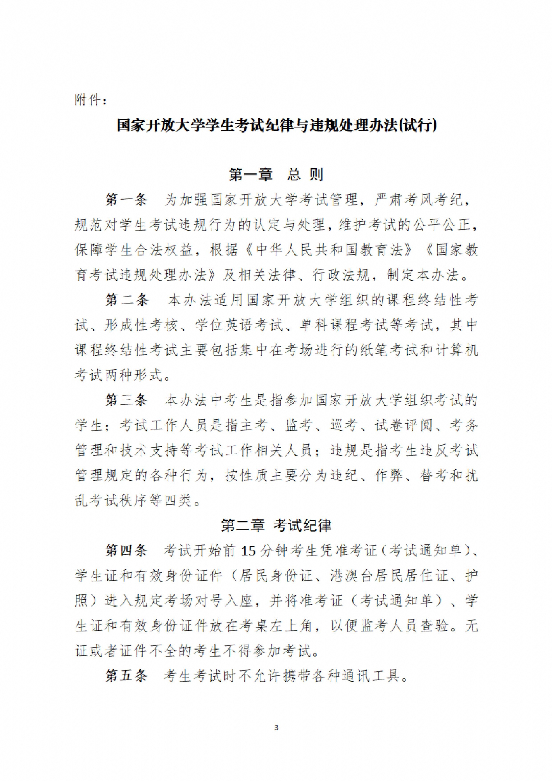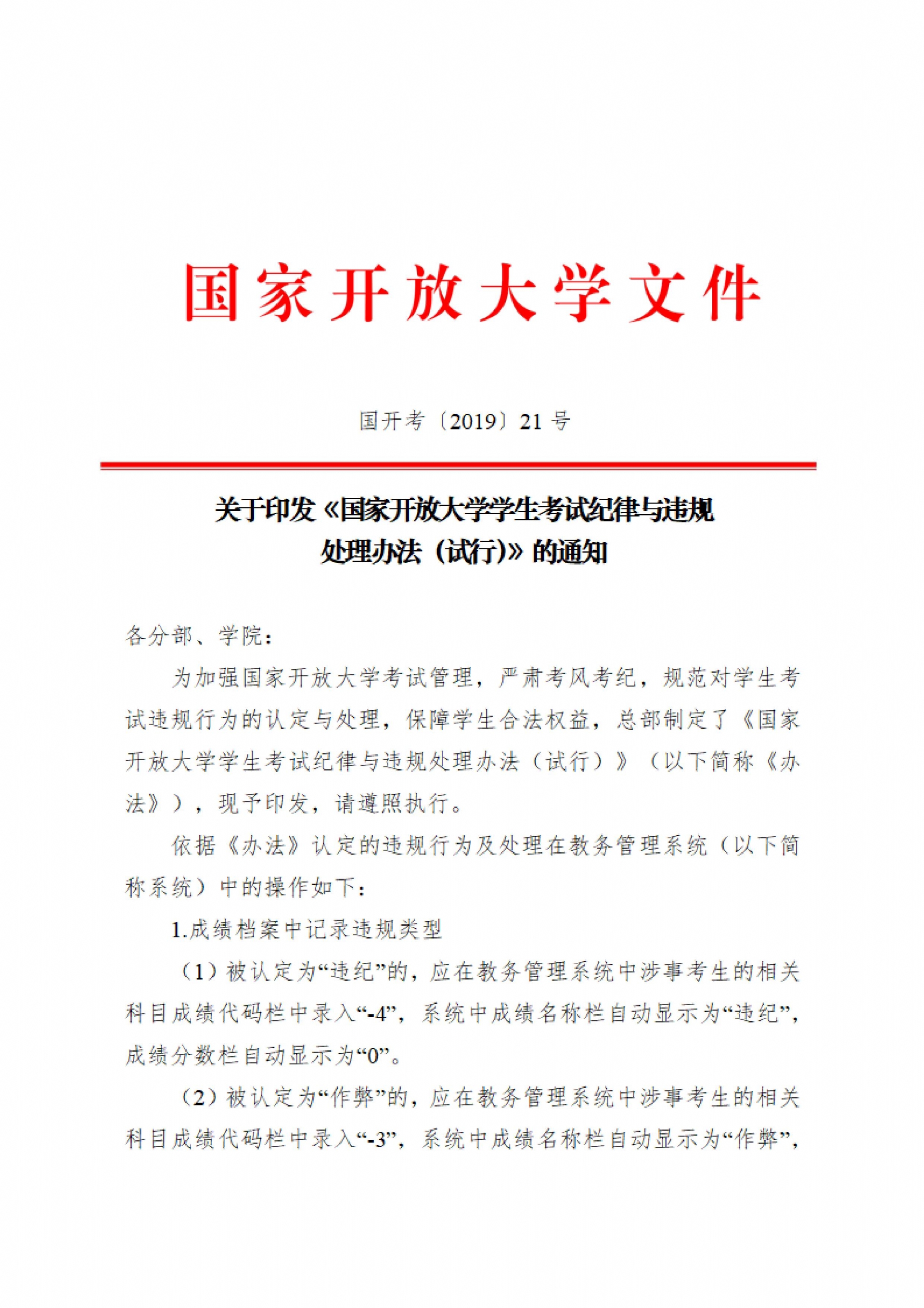关于印发《国家开放大学学生考试纪律与违规 处理办法(试行)》的通知