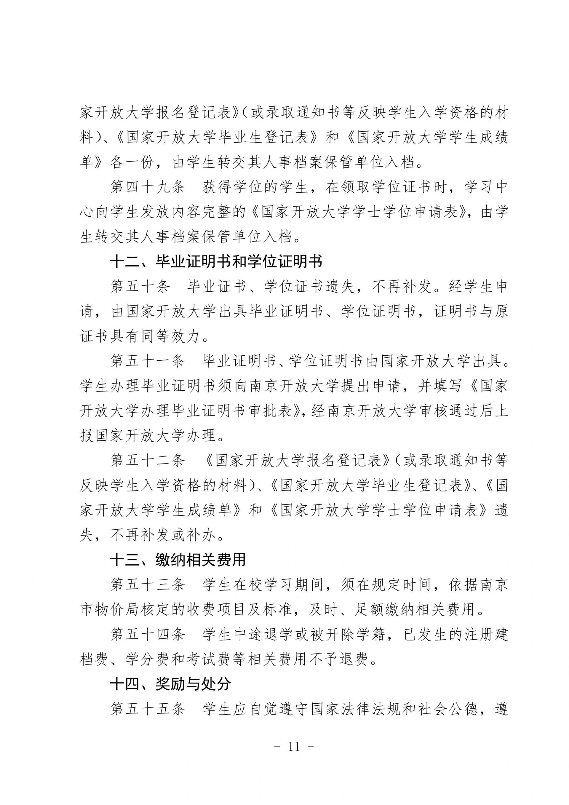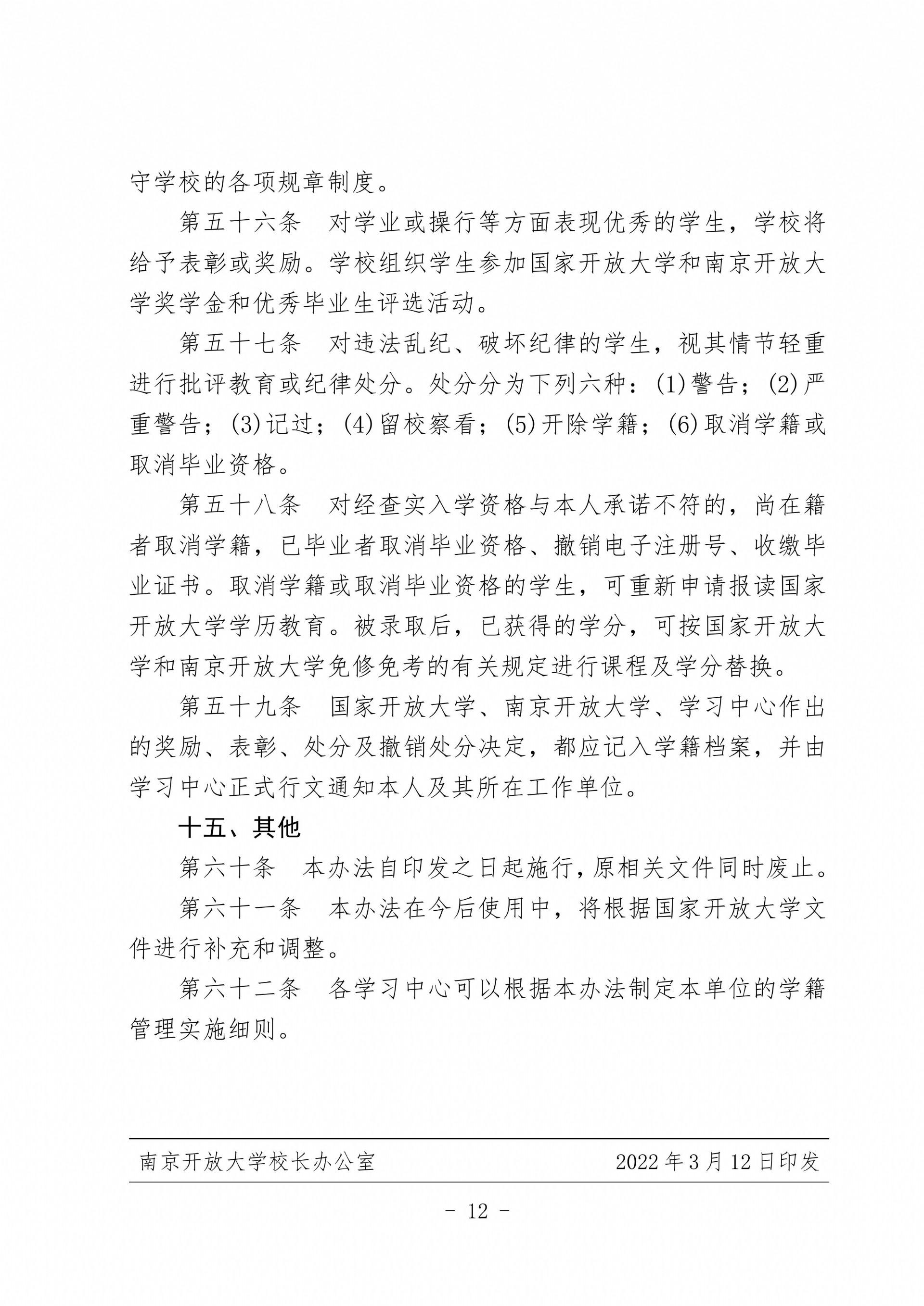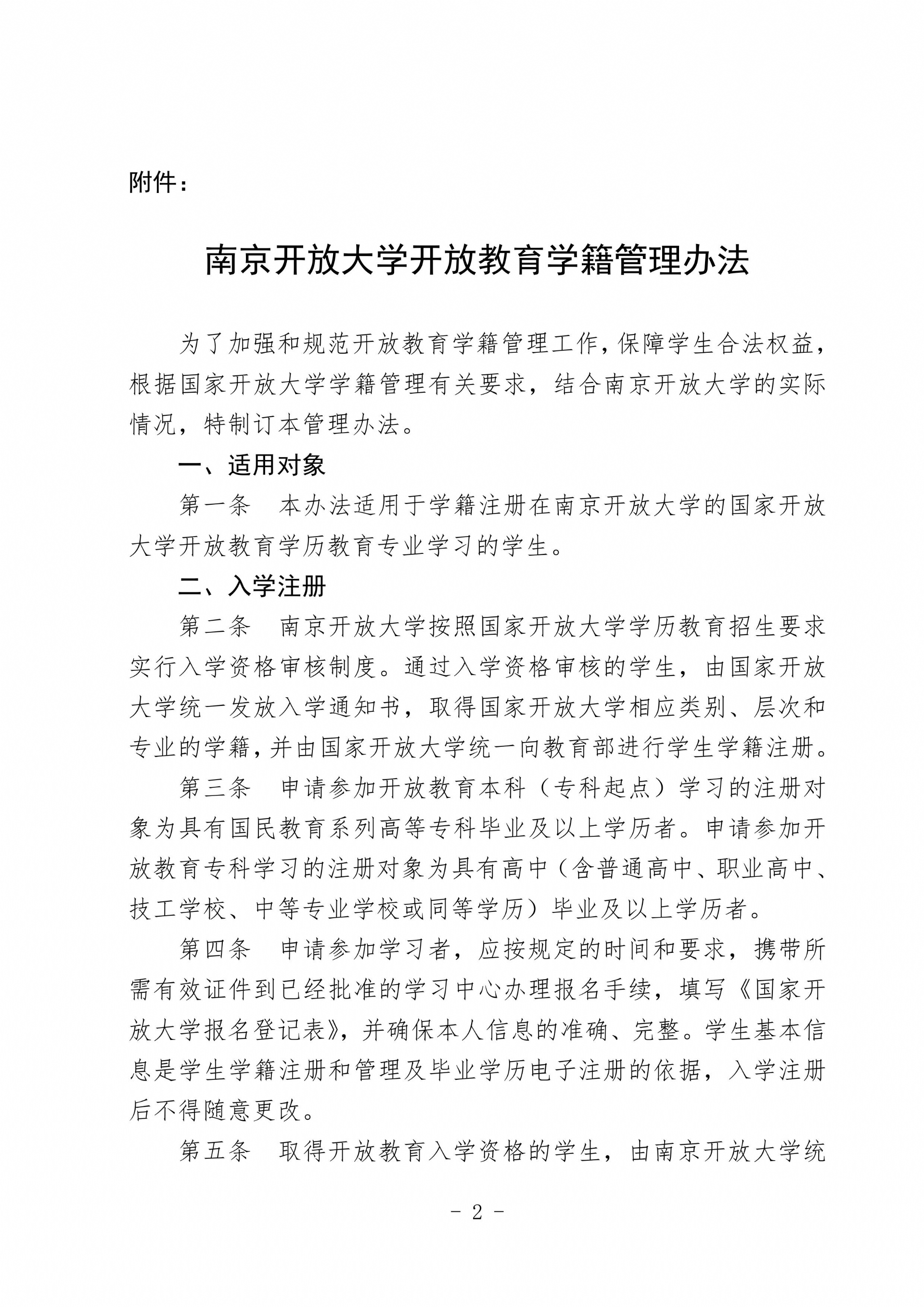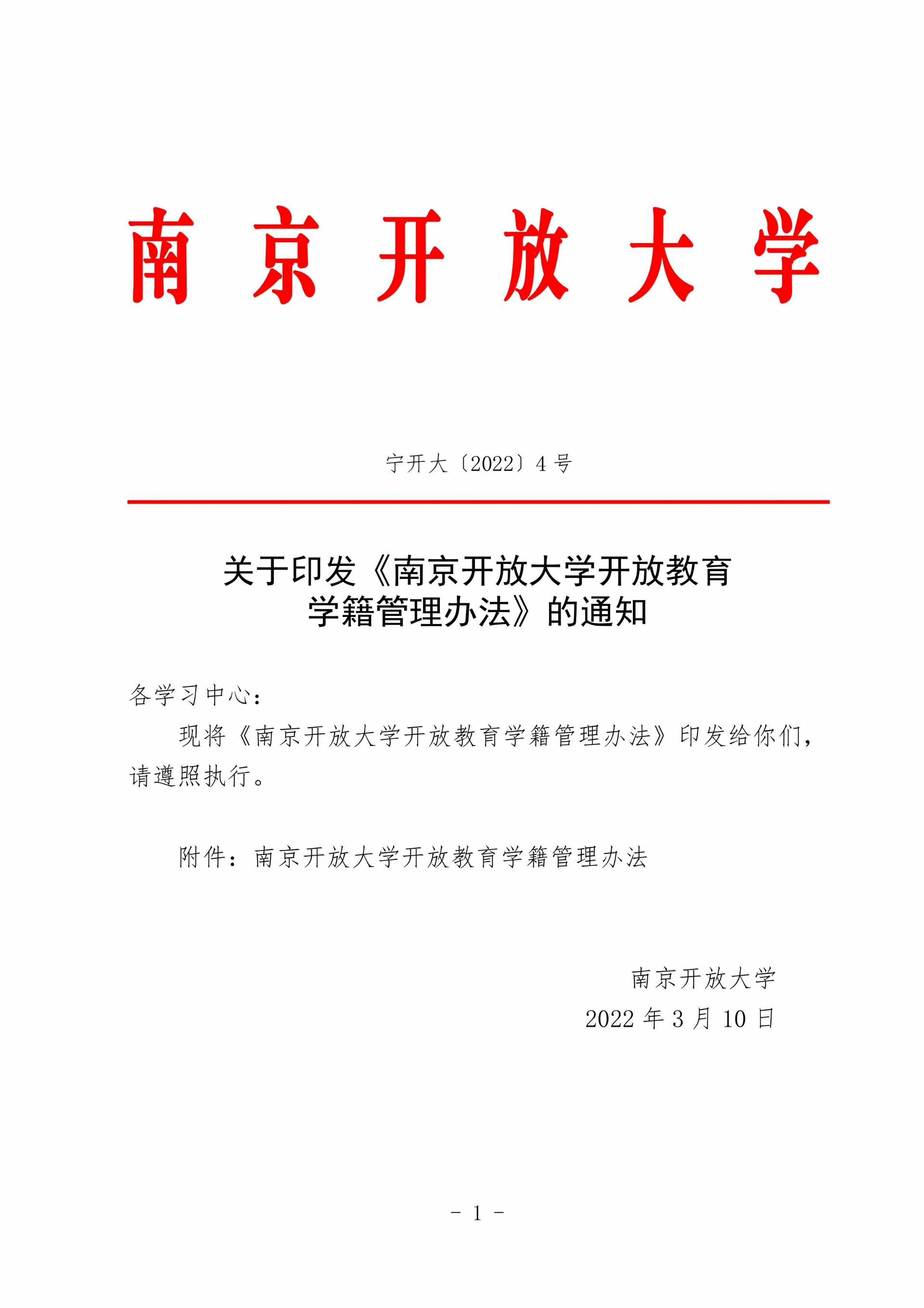 关于印发《南京开放大学米兰平台学籍管理办法》的通知