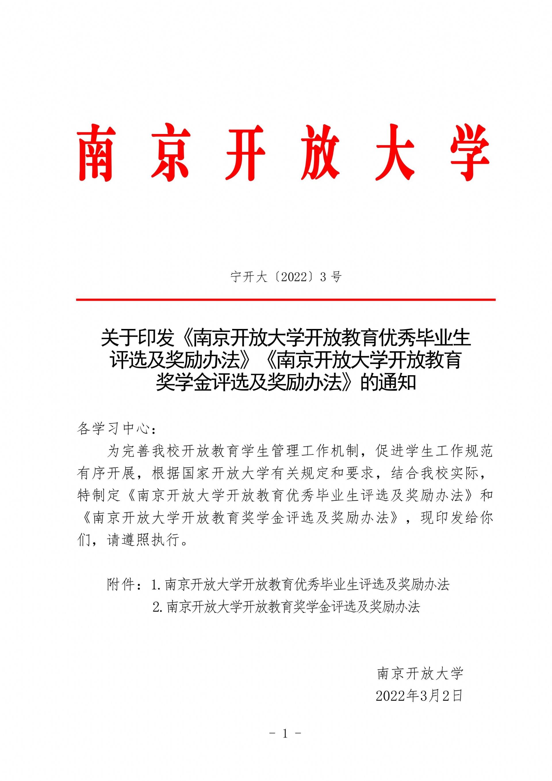 关于印发《南京开放大学米兰平台优秀毕业生评选及奖励办法》《南京开放大学米兰平台奖学金评选及奖励办法》的通知