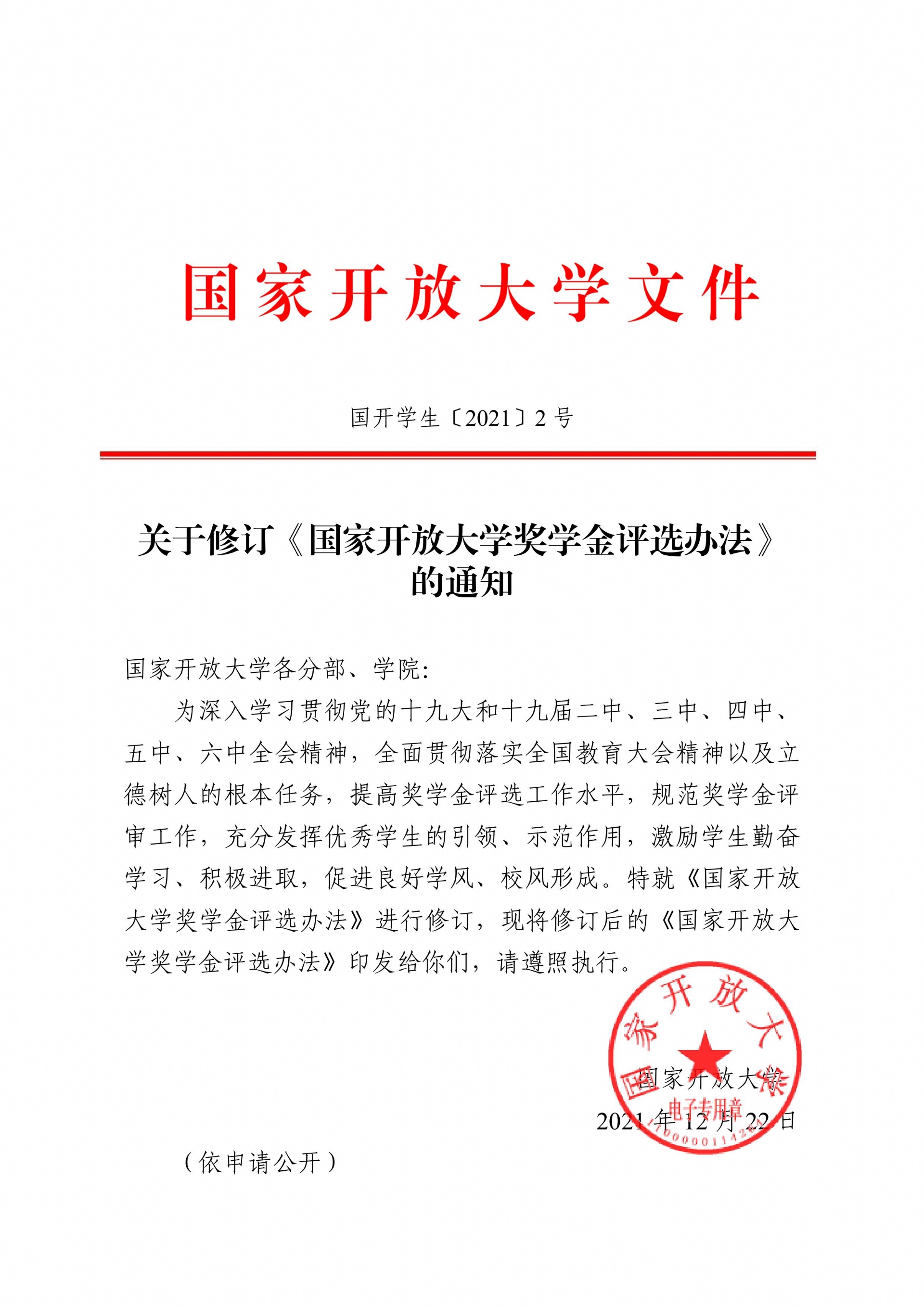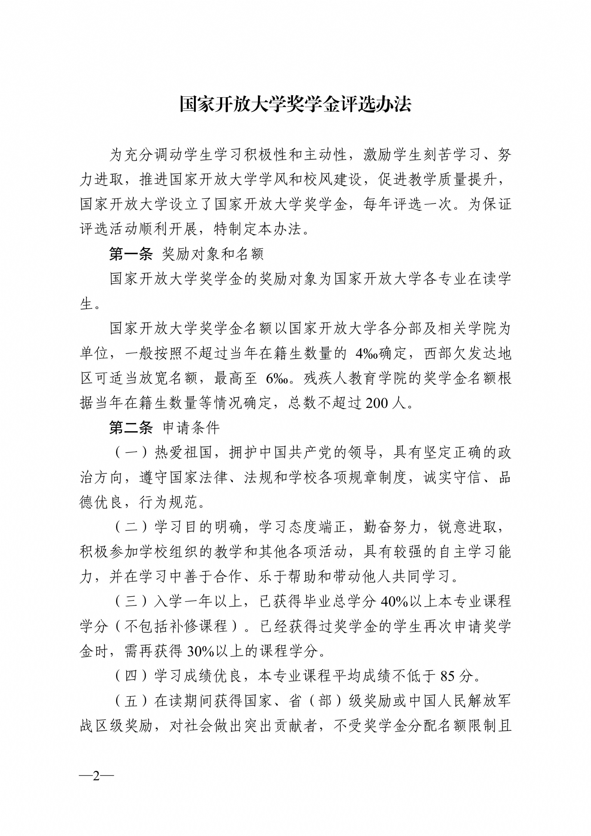 国家开放大学奖学金评选办法