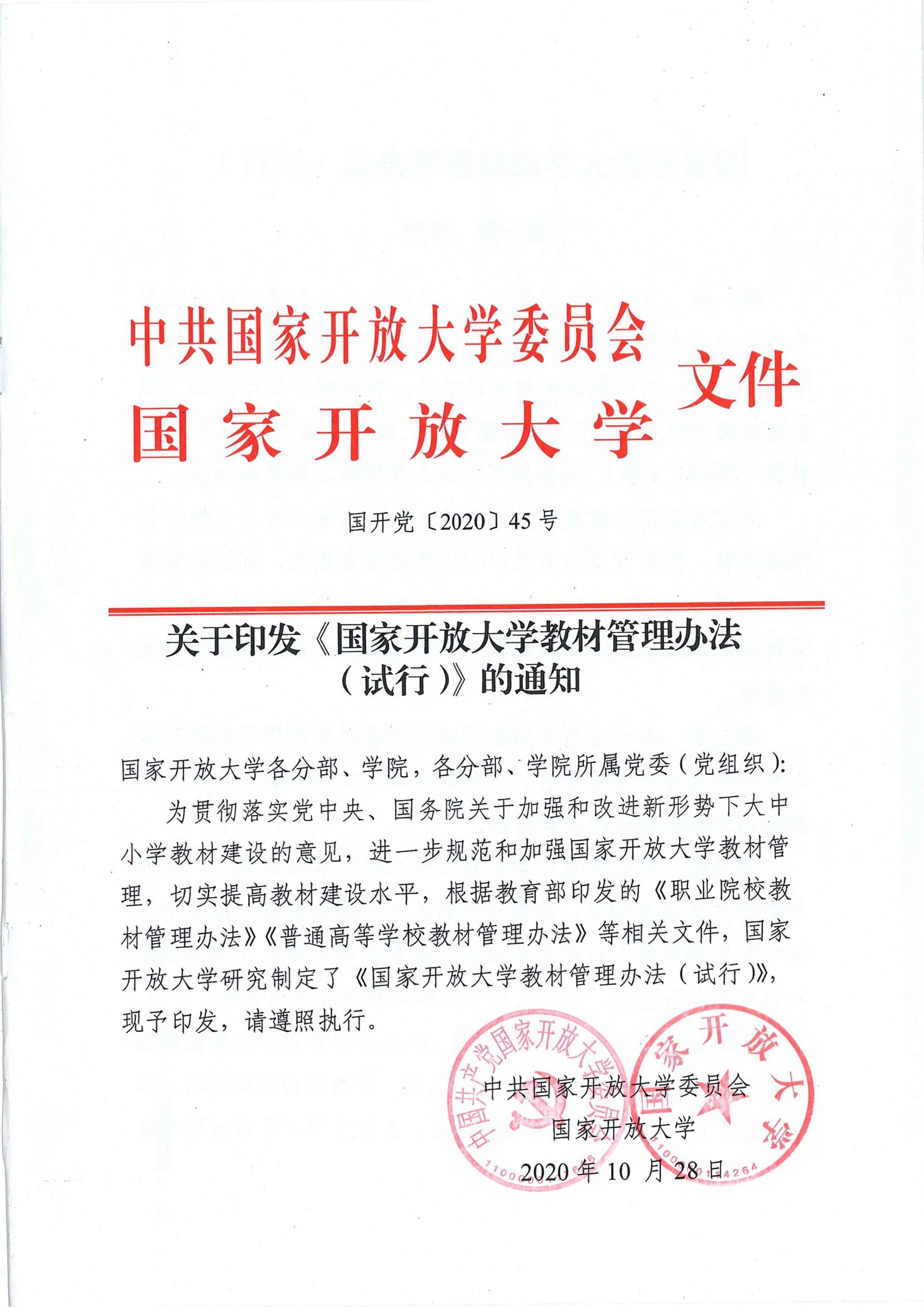 国家开放大学教材管理办法(试行)(国开党【2020】45号)
