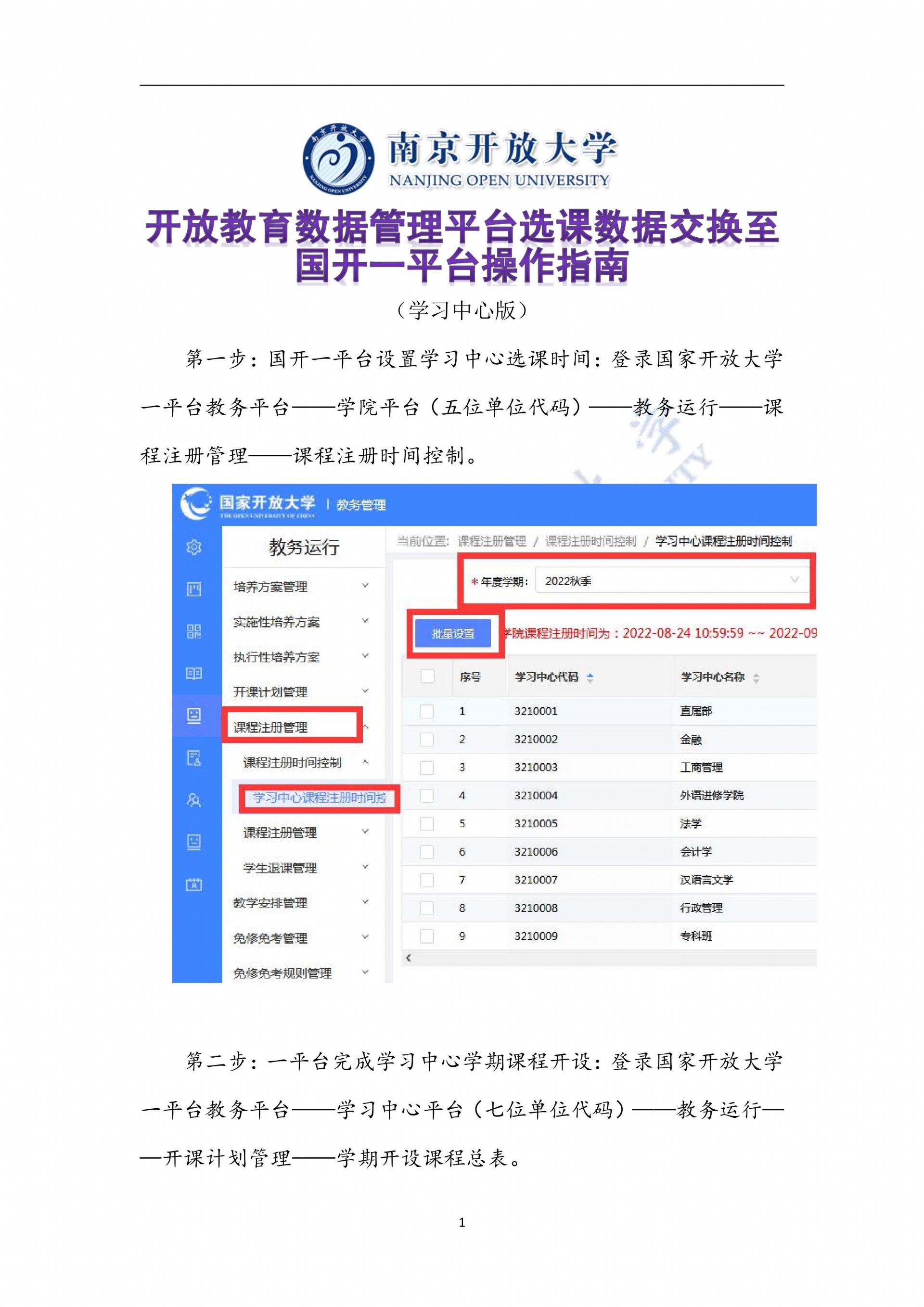 南京开放大学米兰平台数据管理平台数据交换至一平台操作指南20220915版