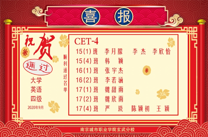 喜报——热烈祝贺2020全国大学生英语等级考试11名学生顺利通过