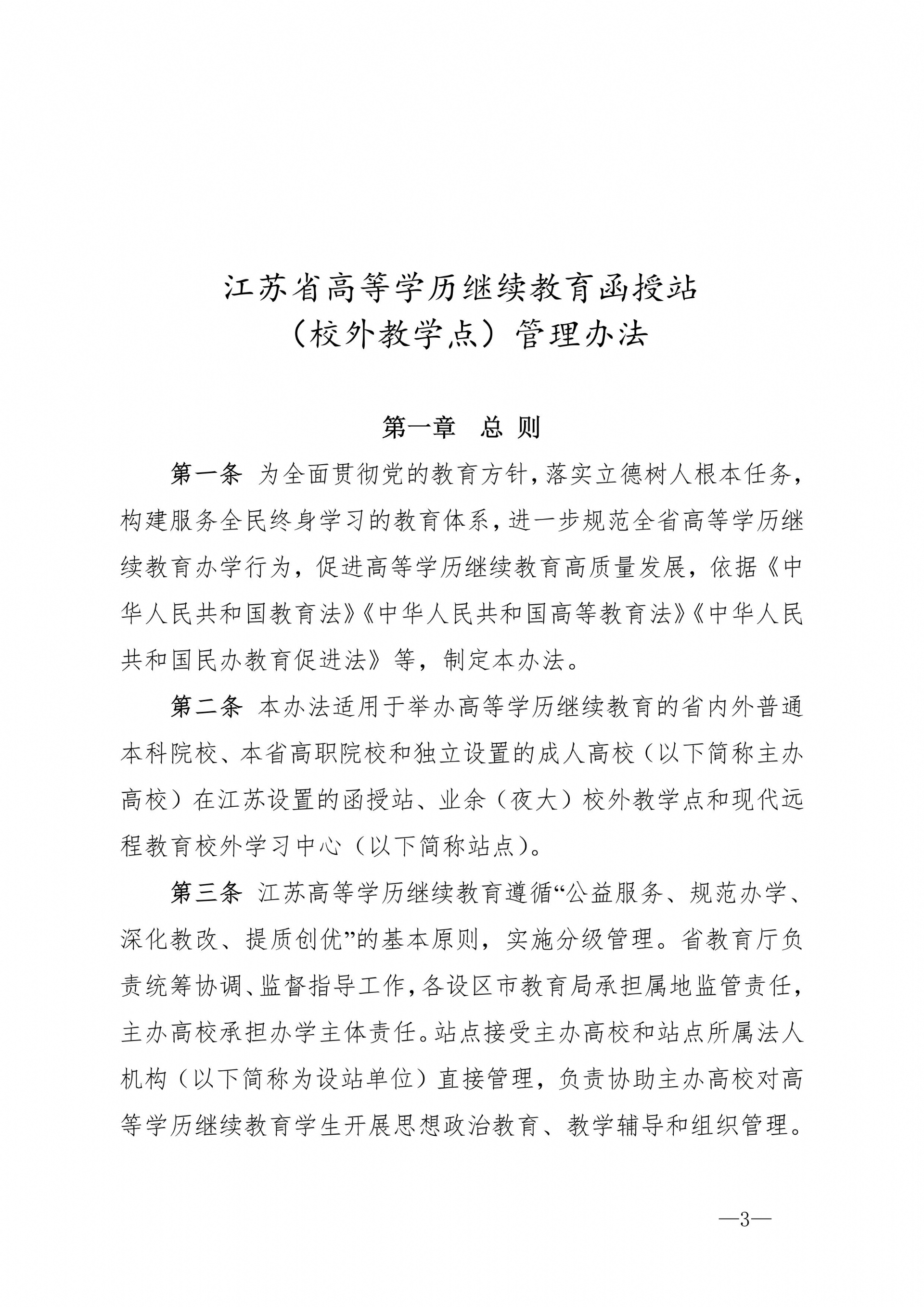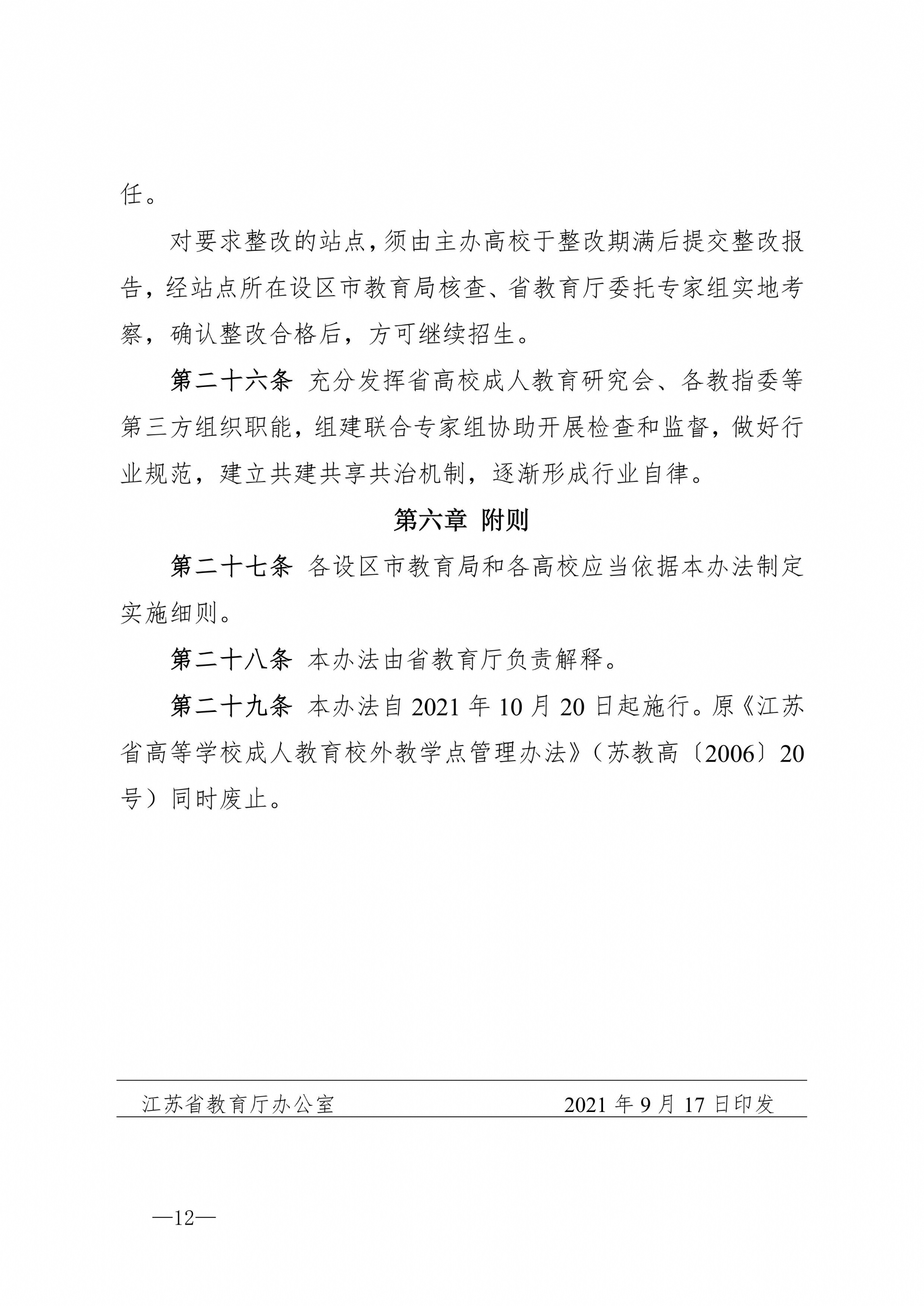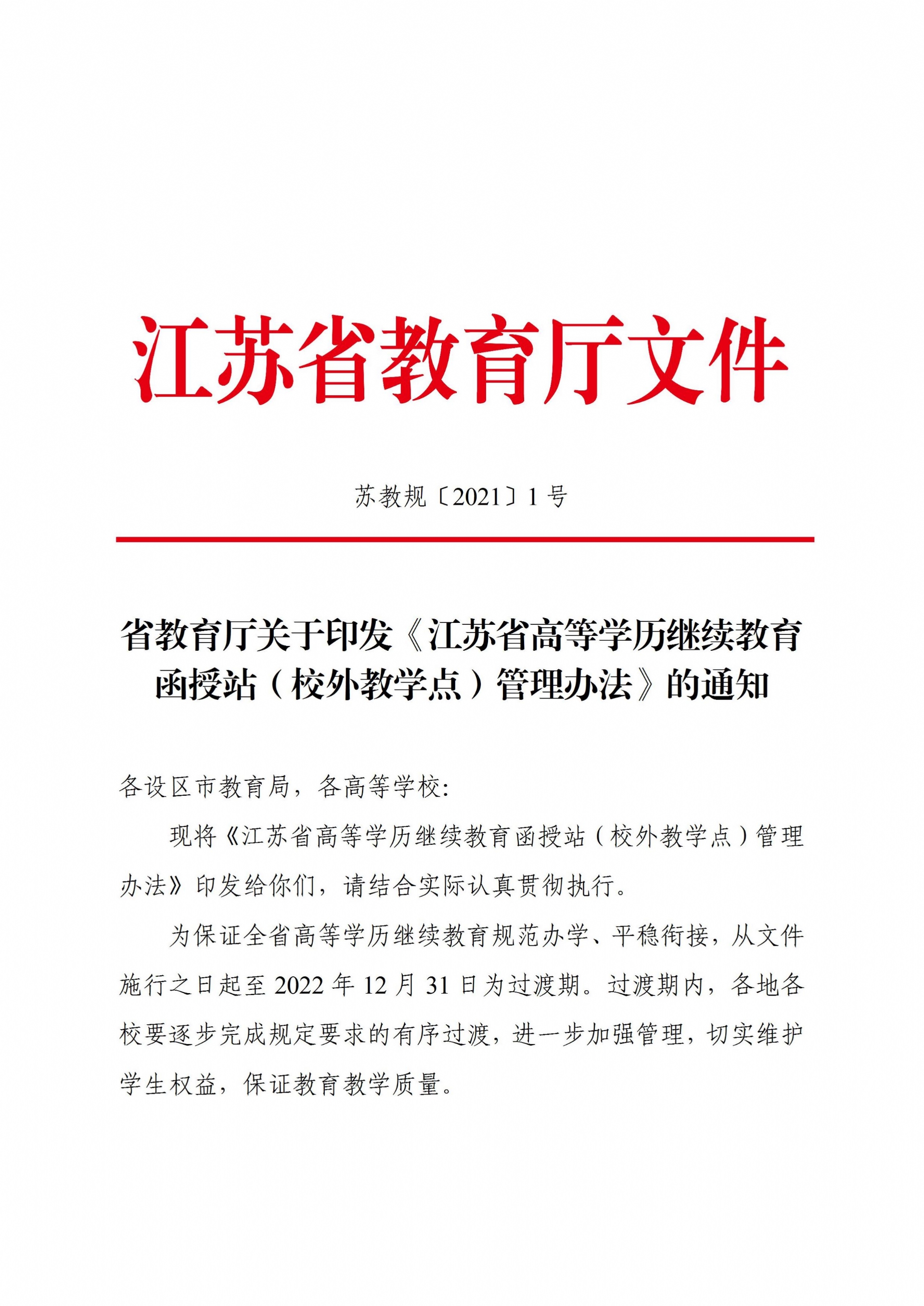 苏教规〔2021〕1号-省教育厅关于印发《江苏省高等学历继续教育函授站(校外教学点)管理办法》的通知