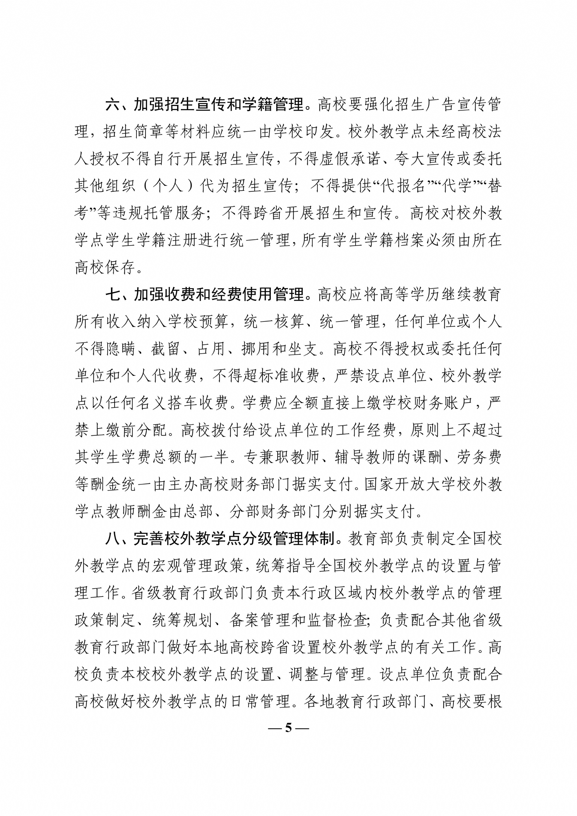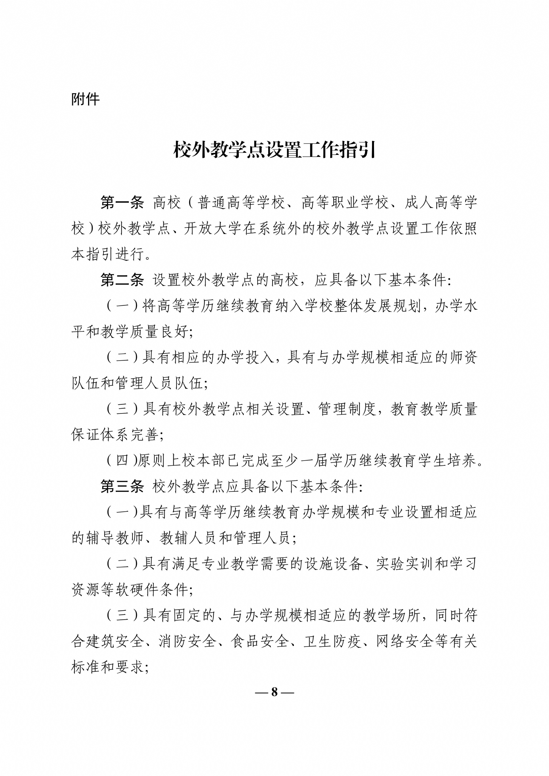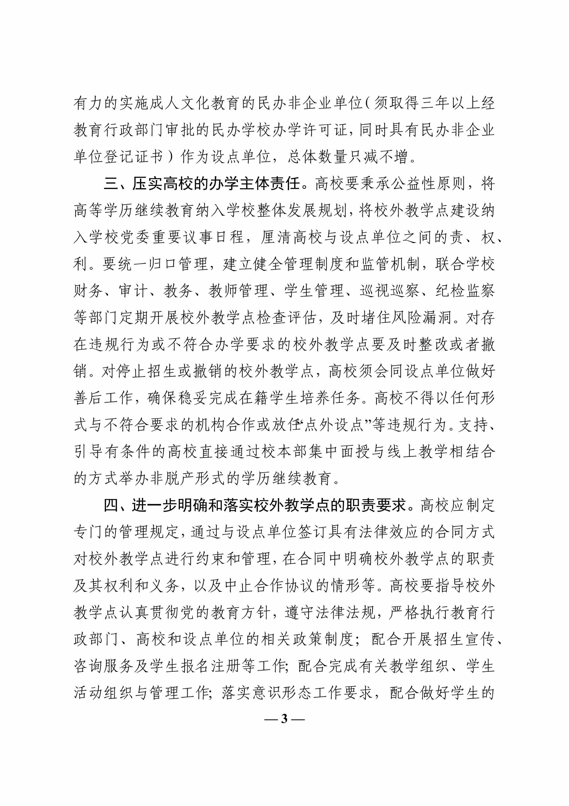 职成厅1号 教育部办公厅关于严格规范高等学历继续教育校外教学点设置与管理工作的通知
