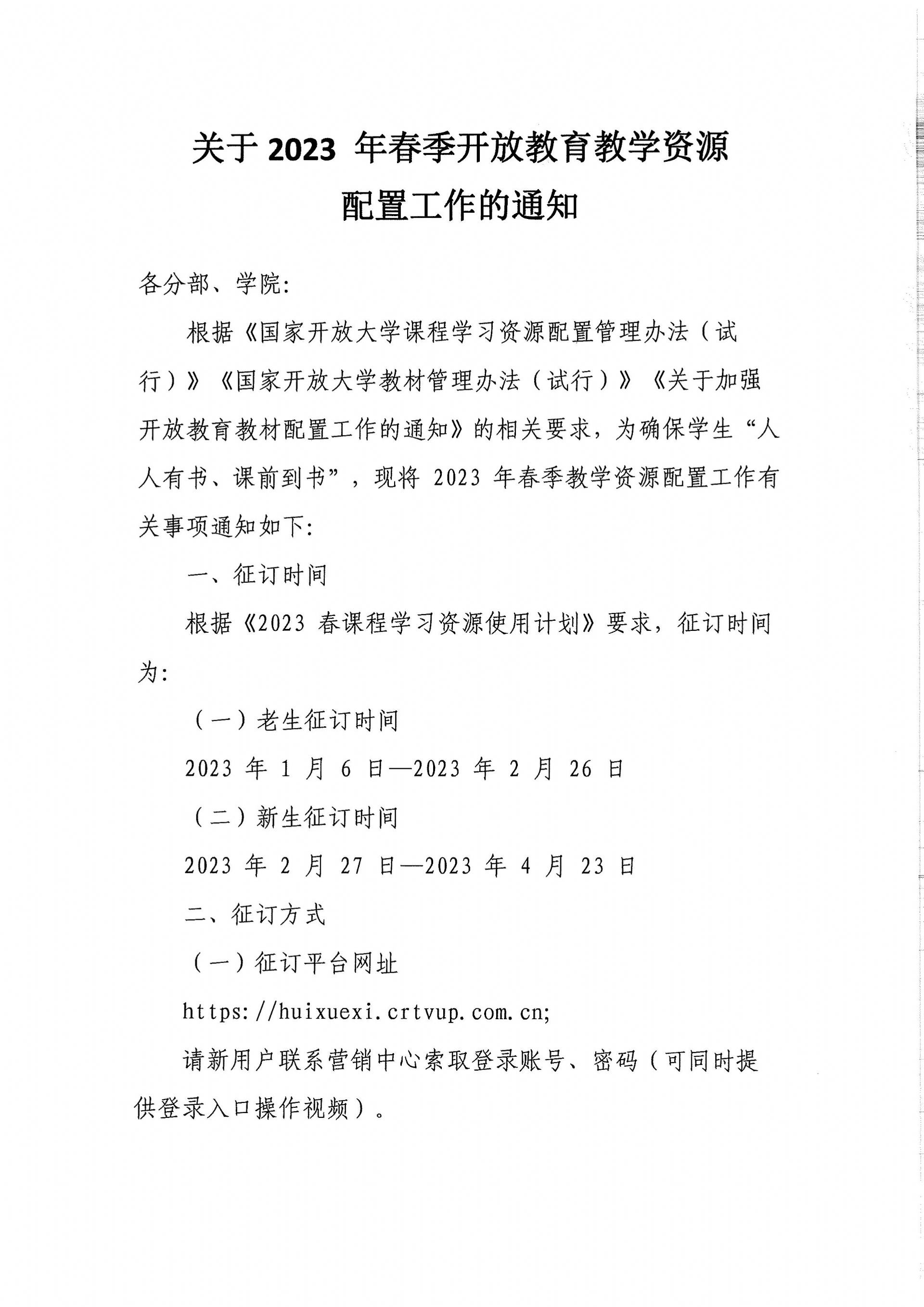 关于2023 年春季米兰平台教学资源配置工作的通知