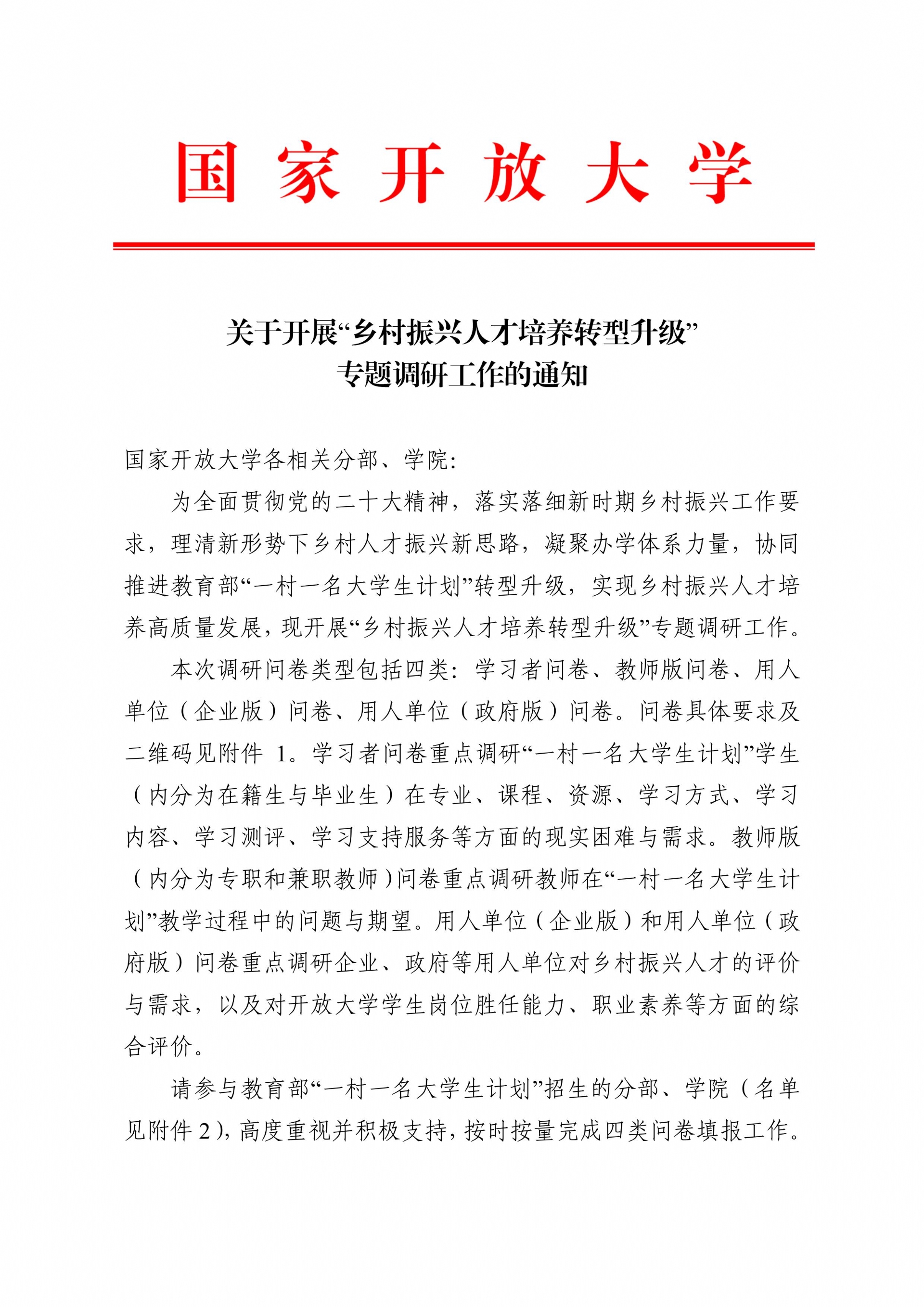关于开展“乡村振兴人才培养转型升级”专题调研工作的通知